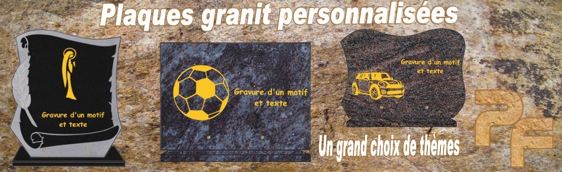Nos plaques funéraires en granit, plaques funéraires rectangle, en forme de livre ouvert, en forme de coeur ou de formes diverses. sont entièrement personnalisables, avec gravure de motifs (26 thèmes au choix, des milliers de combinaisons possibles), gravure de votre texte, ajout de médaillon photo porcelaine, vous sont expédiées sous 72h00 avec une livraison gratuite.